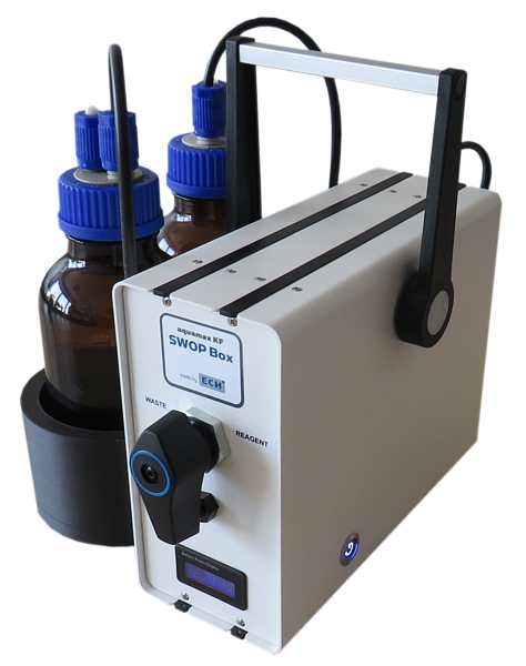 El SWOP BOX permite cambiar los reactivos en las celdas de titulación de forma sencilla y cómoda. El módulo se puede utilizar, por ejemplo, en cualquier valorador Karl Fischer de cualquier diseño, siempre que la celda de titulación tenga al menos una conexión libre.