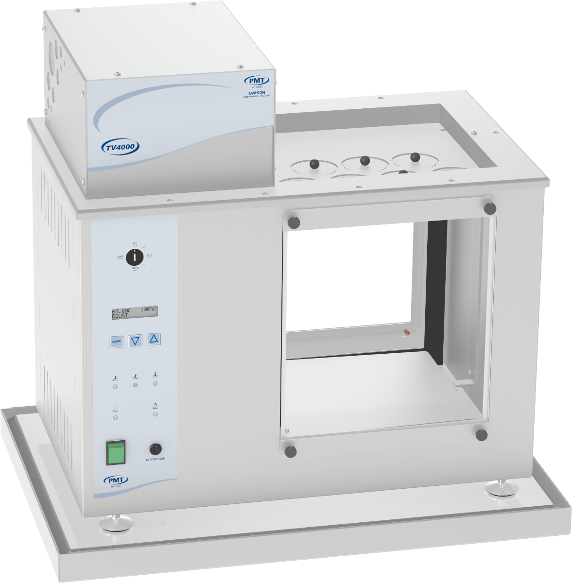 El baño de visibilidad Tamson TV4000 está especialmente diseñado para pruebas que requieren un control de temperatura ultrapreciso y que deben seguirse visualmente, por ejemplo, determinación de la viscosidad cinemática (conforme a ASTM D445, IP 71), calibración de termómetros y sensores, medición de densidad y velocidad de reacción, etc. El TV4000 es un baño muy robusto. Todas las partes húmedas son de acero inoxidable.