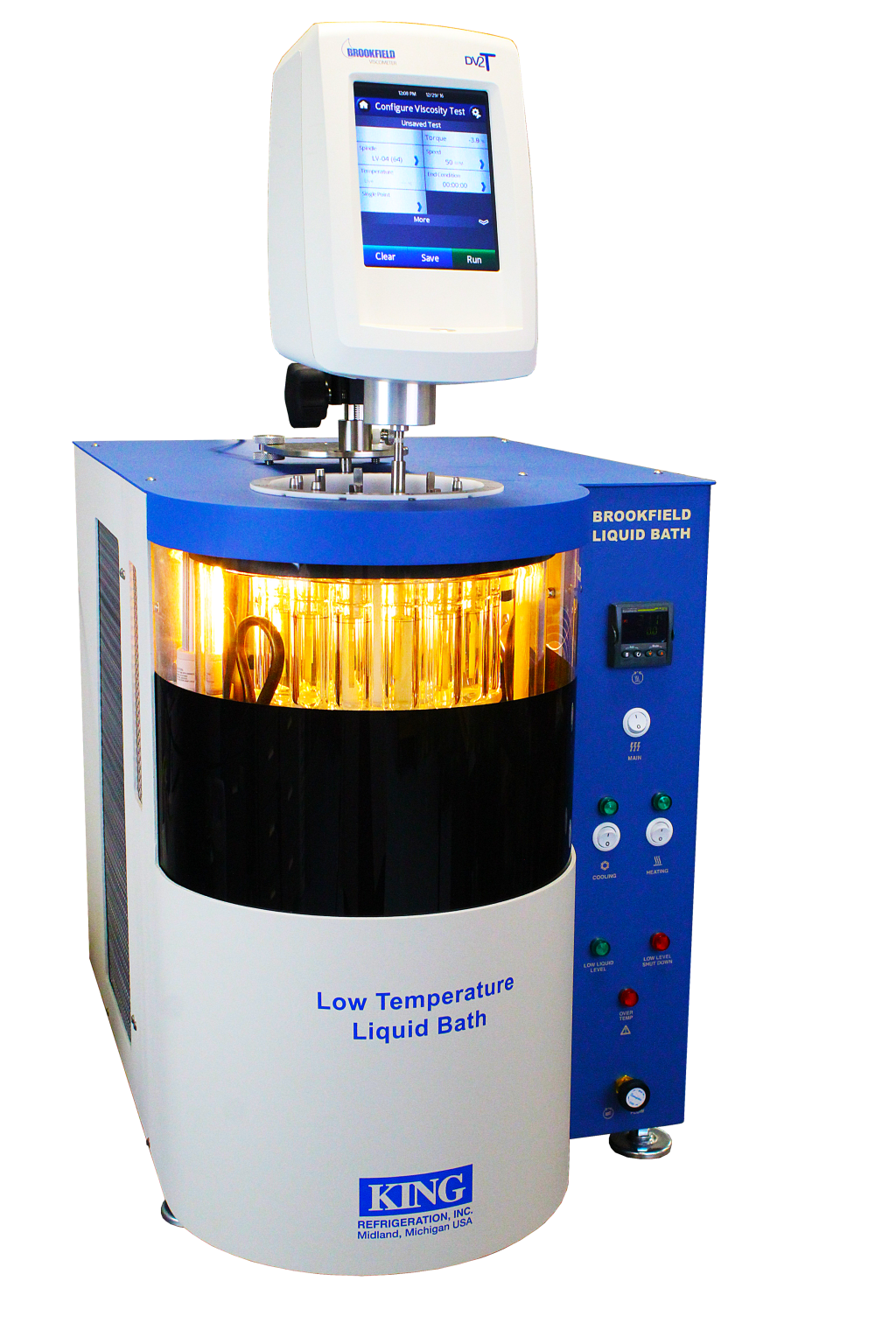 Baño King Cloud & Pour Point: El baño King Cloud & Pour Point mide el punto de enturbiamiento y el punto de fluidez a baja temperatura de los productos derivados del petróleo, un índice de la temperatura más baja de su utilidad para determinadas aplicaciones. Actualmente no existen métodos ASTM para mediciones automatizadas del punto de fluidez D97. El BLB ofrece la técnica de prueba manual y un sistema de refrigeración autónomo con capacidad de programación de temperatura de rampa/remojo. Este instrumento King estándar es una alternativa rentable y fácil de usar a los costosos dispositivos automatizados.