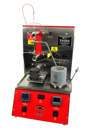 Las tres pruebas TEOST® actuales operan bajo temperaturas y condiciones ambientales identificadas como significativas en motores de combustión interna para simular las tendencias de oxidación y formación de depósitos de los aceites de motor. Las muestras de aceite, tratadas con catalizador, se bombean sobre una varilla depositadora de acero calentada en la que se forman depósitos. El peso de la varilla depositadora después de la prueba se resta de su peso previo a la prueba y se suma al peso de las partículas recolectadas al filtrar el aceite restante. Los resultados se informan en miligramos.