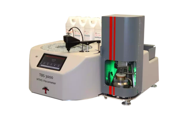 Viscosidad rotacional (absoluta) a alta temperatura y alta velocidad de corte: El diseño coaxial del rotor/estator permite la medición exacta de la posición del rotor y la respuesta de torsión de la resistencia del líquido al flujo (fricción viscosa), lo que determina la viscosidad aparente del fluido. La aplicación continua de un perfil de velocidad de corte lineal y constante al fluido convierte al TBS en un viscosímetro absoluto en el que la velocidad de corte «verdadera» se calcula a partir de dimensiones y velocidades de rotación conocidas. El TBS mide las viscosidades de aceites nuevos y usados en múltiples velocidades de corte y temperaturas seleccionadas. Esto resulta especialmente útil con los aceites multigrado y su influencia en la eficiencia del combustible.